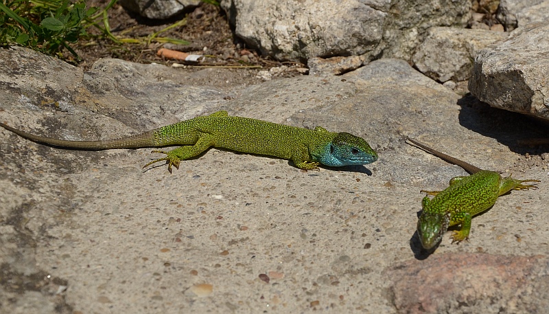 Nein, mit dem blauen Kopf, das sind alles Smaragdeidechsen. Und natürlich die Weibchen dazu. Vielleicht habe ich mich auch getäuscht.