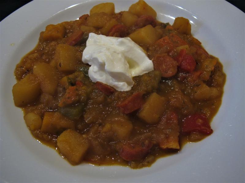 Bratwurst, Lammkotlett, Ratatouille und Kürbis-Mixpickles