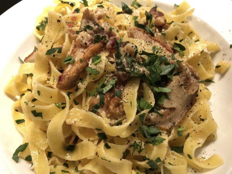 Bei uns gab es Tagliatelle mit Steinpilzen. :D