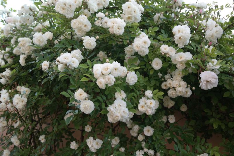 Rosa "Helenae" und "Rambling Rektor" würden passen.
