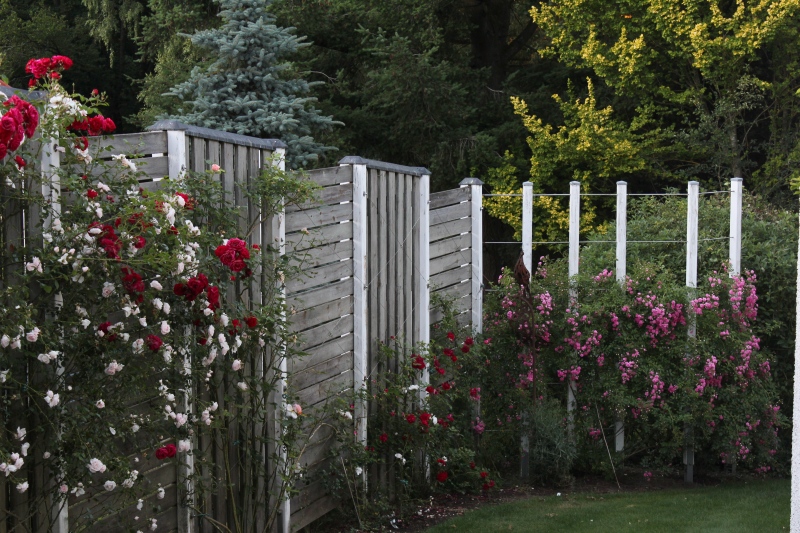 Und wenn Ihr schonmal bei der Abstimmung seid lässt der Nachbar auch sicher mit sich reden, wenn Ihr einen kleineren Rambler oder eine so schöne Kletterrose an einer Pergola wie bei Lady Gaga als verbindendes Abschlusselement über den so verschiedenen Zäunen schweben lasst. ;D
