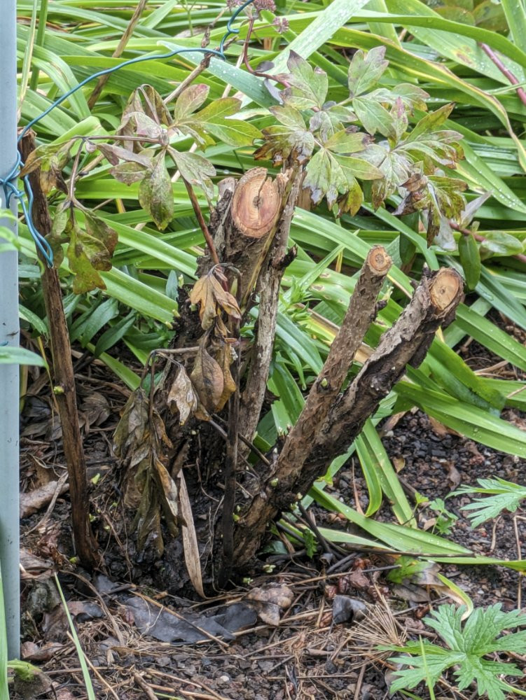 Bei 'Souvenir de Lothar Parlasca' war es im vorletzten Sommer so schlimm, dass ein Trieb nach dem anderen im Laufe des Sommers welk wurde und ich die Pflanze dann Mitte August kräftig runtergeschnitten habe. Sie ist gut durchgetrieben und hatte im vergangenen Jahr sogar wieder ein paar Blüten. Weg ist der Pilz sicherlich nicht, aber ich hoffe, die wunderschöne Pflanze noch eine Weile erhalten können. Irgendwo habe ich den Tipp gelesen, Strauchpaeonien im Herbst vollständig per Hand zu entblättern, damit infiziertes Laub auf jeden Fall entfernt ist. In diesem Herbst habe ich das erstmals konsequent gemacht. Mal sehn, was es bringt.