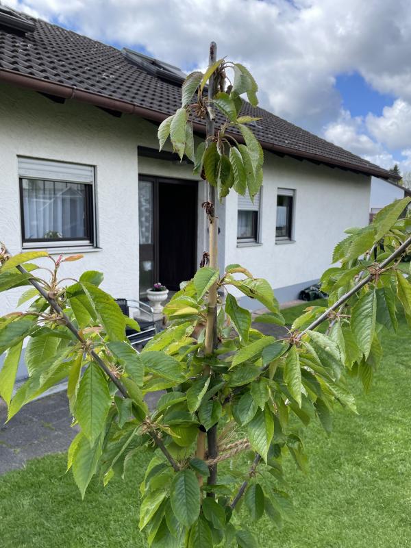 ich hatte letzte Jahr im Herbst 4 Obstbäume gepflanzt, alle gedeihen prächtig bis auf meine Süßkirsche, die macht mir seit paar ein paar Wochen sorgen.