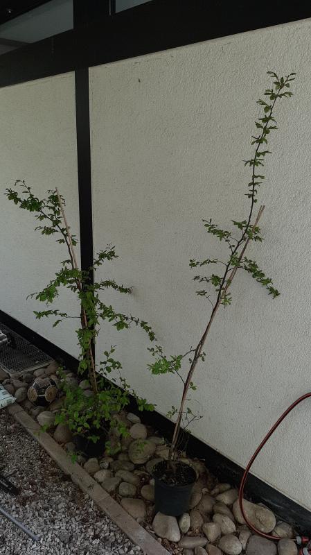 Würde ich auch gleich machen. Die sollen ja am Ende nicht mit dem Stämmchen auf 2 m enden, sondern mit Astwerk. Also jetzt den Hauptstamm auf ca 1.5 m einkürzen. Meine Schätzung.
