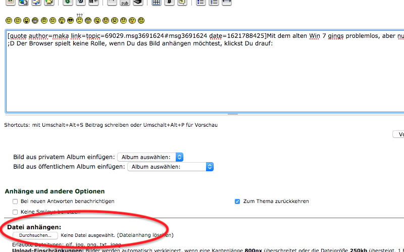 Der Browser spielt keine Rolle, wenn Du das Bild anhängen möchtest, klickst Du drauf und suchst Dir das Bild auf Deinem Rechner aus: