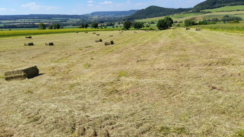 Mein Verwandter mit Schafen und Ziegen im Nebenerwerb hatte noch nie so viel Heuballen in all den Jahren auf der Schwäbischen Alb mit kargen Böden.