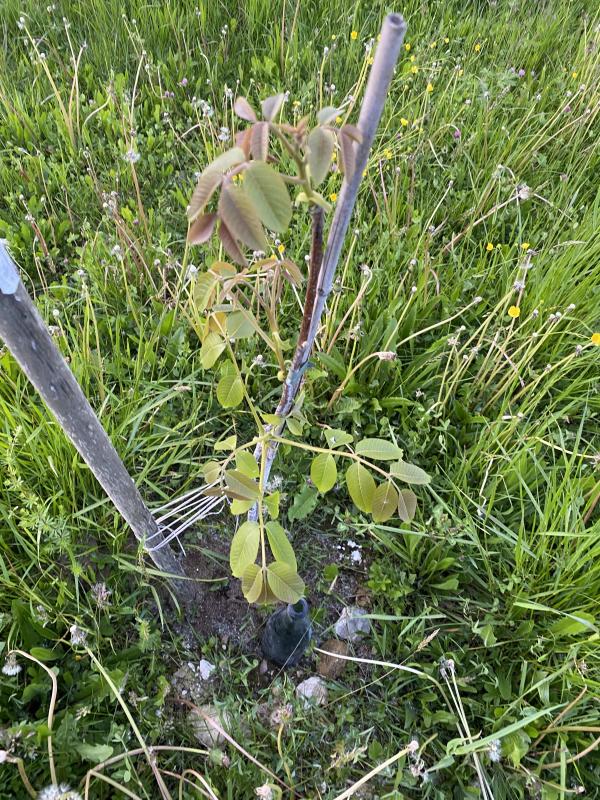 Ich hatte unsern normalen Nussbaum für oder wegen dem Bauern eine Zeit lang weiss beflaggt. ;) Rehböcke und Bauern können kleinen Bäumen gefährlich werden.