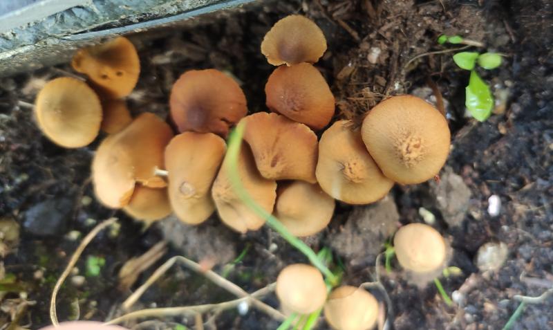Kann mir jemand sagen welche Pilze das im meinen Hochbeet sind?