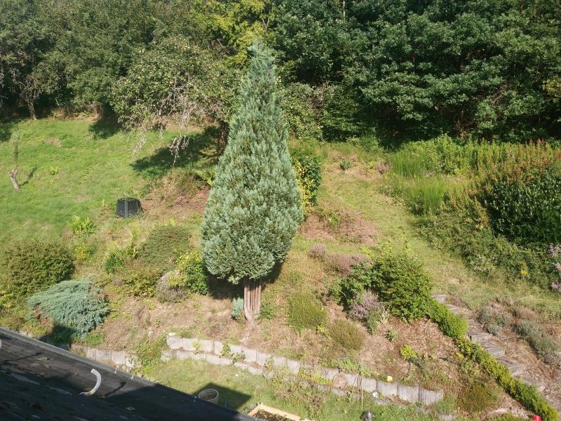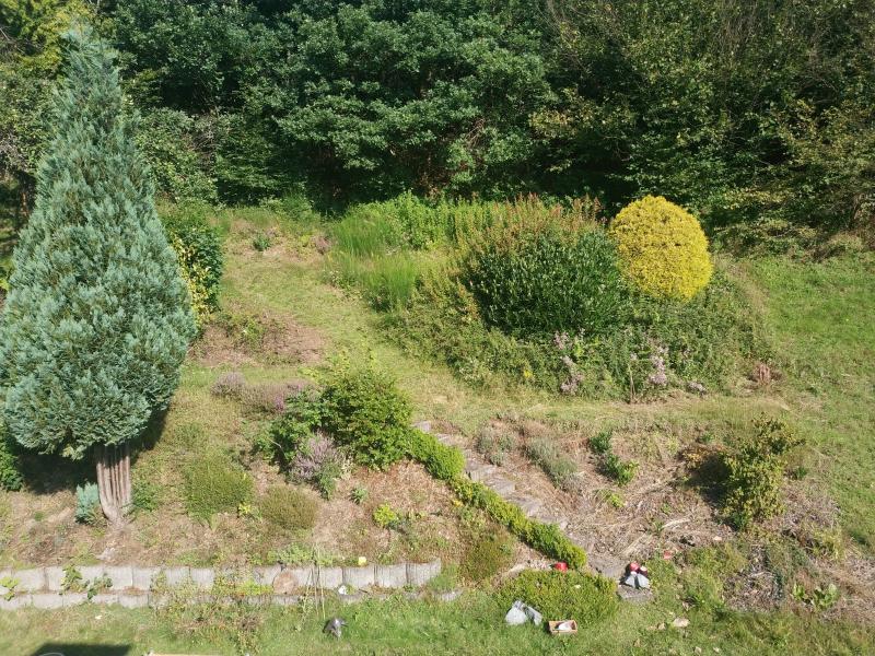 Hier sieht man den Garten im Großen. Geknipst vom Dachbodenfenster aus. Die Terrassierung ist glaube ich zumindest erkennbar.