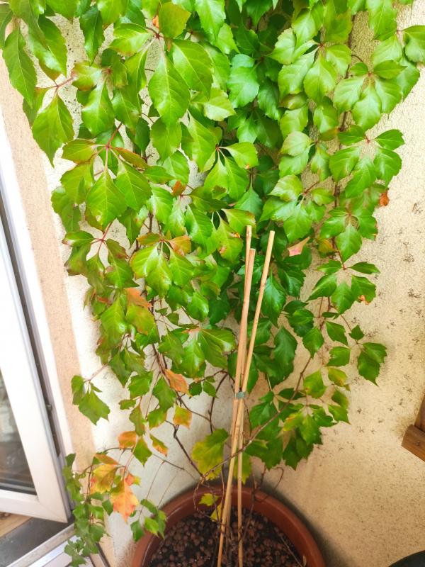 Seit Frühling steht ein Wilder Wein "Engelmannii" bei uns auf dem Balkon und ist in den letzten Monaten schon kräftig gewachsen. So weit so gut.