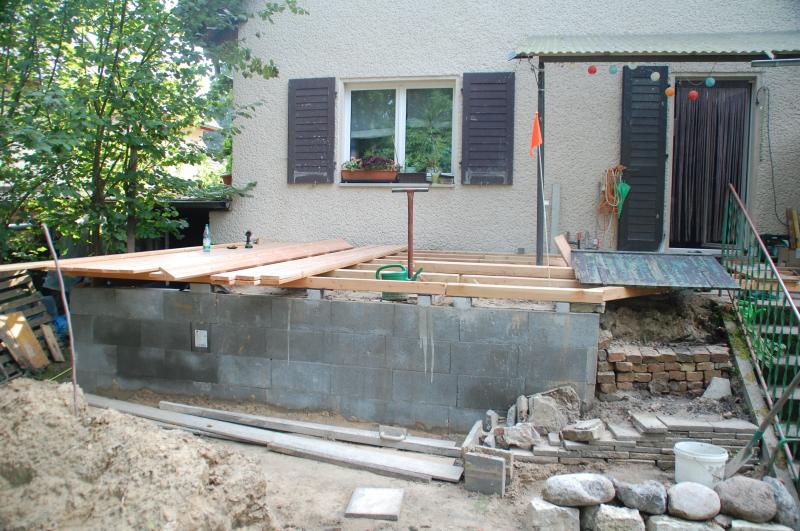 Ich würde die Terrasse auf keinen Fall mit Holz abstützen.