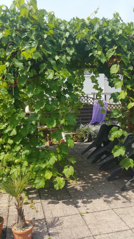 hier ein sommerbild. man konnte sich fast komplett im weinstock verstecken wenn man unter der pergola saß.
