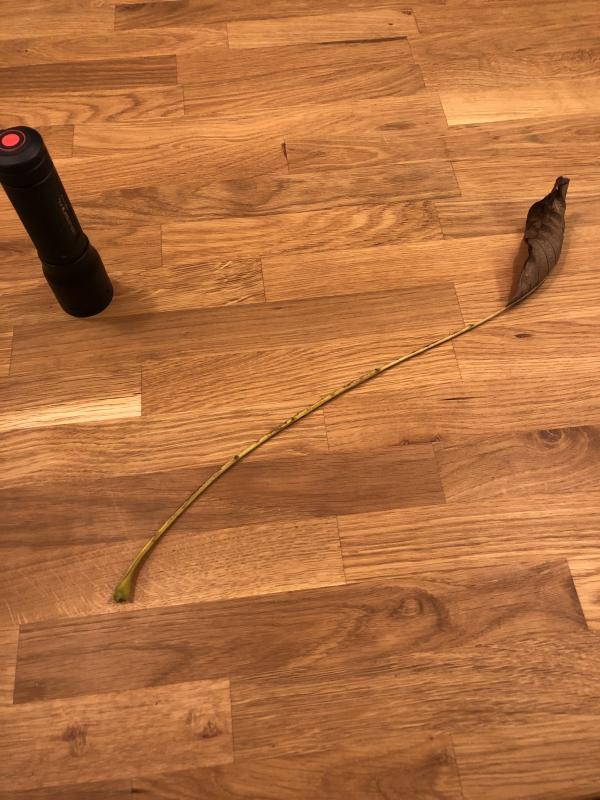 Das beruhigt mich schonmal sehr :D aber nochmal um ganz sicher zu gehen im Anhang der ganze stiel. Da waren vorher ja auch noch 5-6 andere Blätter dran. Ist das echt normal das da dieser 35 cm lange stiel abfällt? ;)