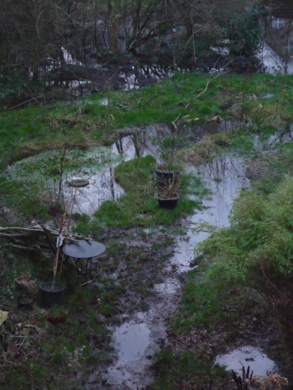 Das ändert bei uns im Garten nicht sonderlich viel. Bei länger anhaltendem Regen verwandeln sich Teile unseres Gartens immer wieder in eine Seenplatte, sodaß sogar der Reiher zu Besuch kommt.