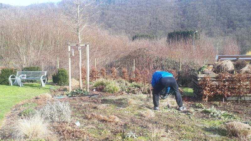 So bald ich die ersten Spitzen der Frühlingszwiebelblumen aber auch der Allium zu Vorschein kommen und das ist zwischen E. Dez. und M. Jänner wird alles abgemäht und bleibt einige Zeit noch liegen. Mit einem Rechen wird es später abgeerntet.