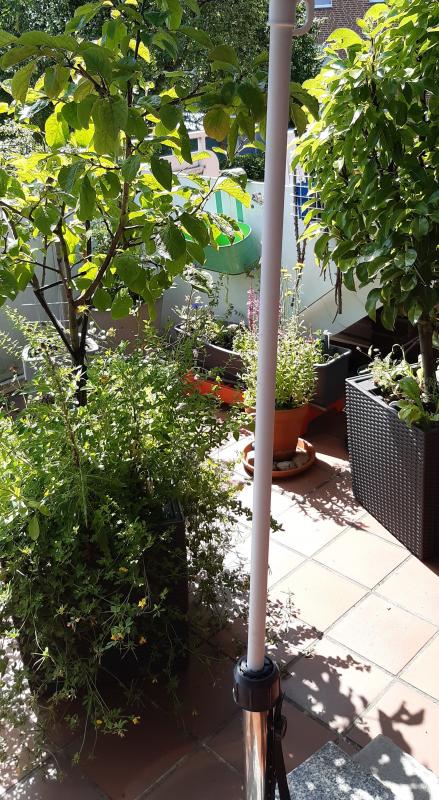 Das sieht sogar ganz toll aus, wenn der Kasten/Kübel nicht nur das Bäumchen beinhaltet, sondern noch Blühendes/Grünes mit beinhaltet. :D Finde ich jedenfalls. Ich mag es etwas verwildert. ;) Hier zwei Bilder aus dem letzten Jahr im Hochsommer.