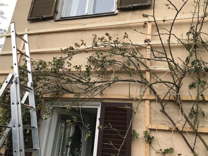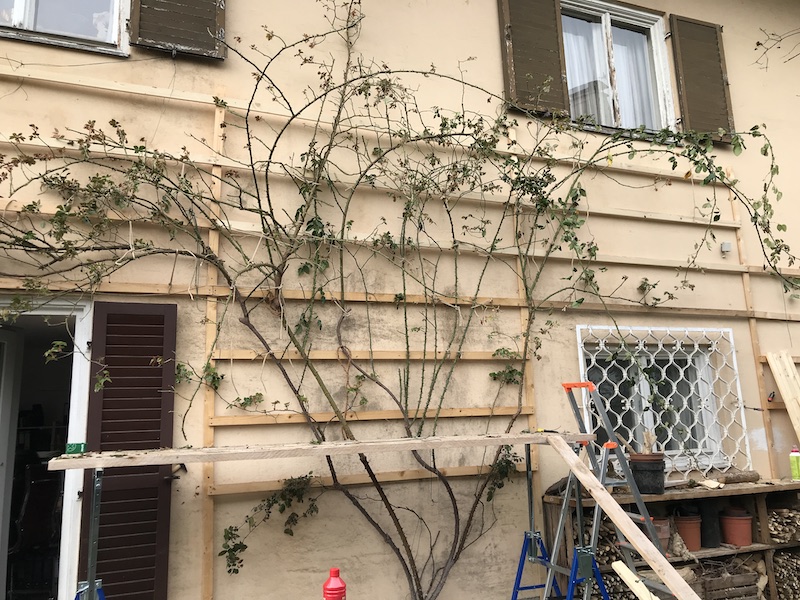 riesige Kletterrose an Spalier neu binden - was soll ich vermeiden?