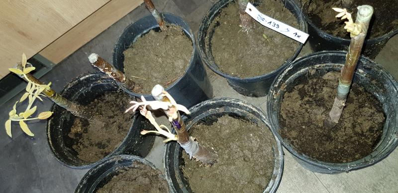 Und die Veredlungen müssen auch nach der Veredlung warm stehen, am besten >20°C oder so und müssen entsprechend nach dem Austrieb, vor dem Auspflanzen, auch langsam an Freilandbedingungen gewöhnt werden.