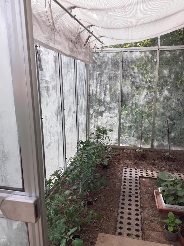 Ich habe ziemlich neu ein Gewächshaus und habe das 1. Mal Tomaten gepflanzt, die an Schnüren hochwachsen sollen. Oben Haken mit Schnur zum Ablassen dran.