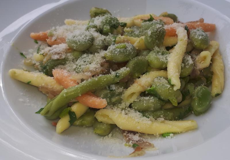 Heute habe ich dicke Bohnen geerntet. Die gab's mit gebratenen Zwiebeln, Knoblauch, frischem Koriander und Parmesan mit Pasta :P