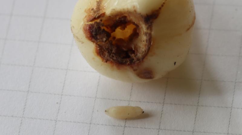 Die Maden der Narzissenfliegen haben derzeit etwa eine Größe von 5mm erreicht ...