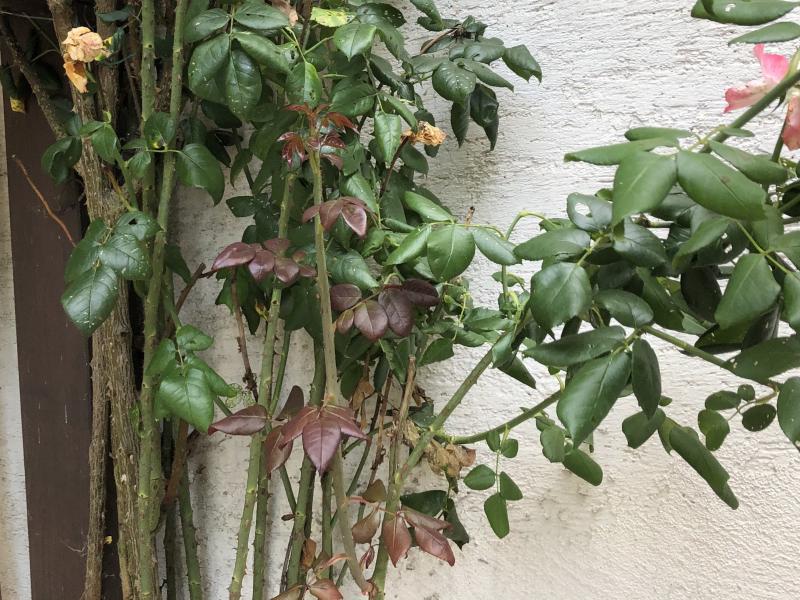 ich würde eine Edelrose eher ausschließen. Ich kenne zB. viele altmodische Queen Elizabeth, die hier in der Gartenkolonie oft so mit 2,5m rumstehen, sehr aufrecht, und mit mehreren Austriebjahrgängen.