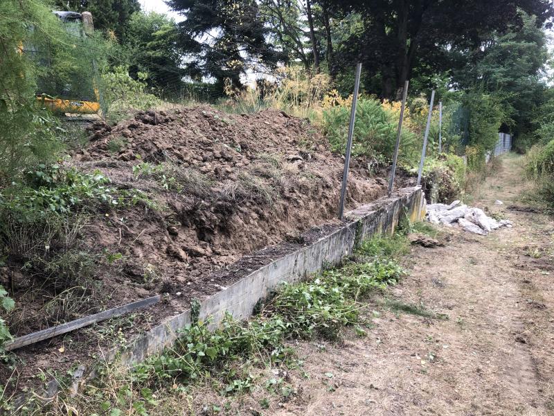 Da kommen Beton-Lsteine und auch wieder ein Zaun hin. Der Hang muss an dieser Stelle abgefangen werden. Aber die sehen wir ja von oben nicht.