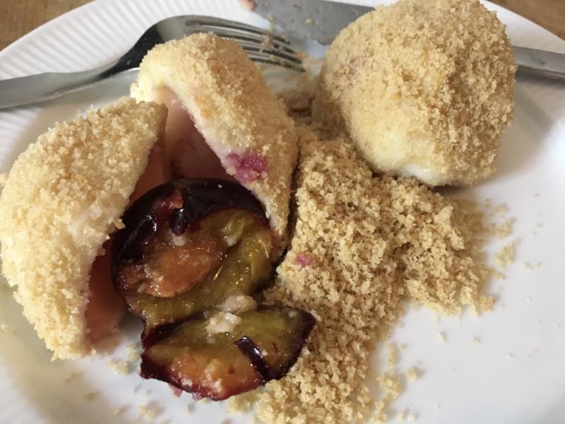 Und hier die Zwetschkenknödel. Tochter hat gemeint, die Oma schafft den Teig dünner. Das nächste Mal darf sie formen :)