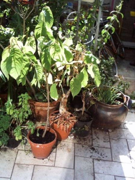 So erging es mir mit dem Kaffee. Bei einer Röstereibesichtigung ein paar grüne Bohnen geschnorrt, dann lange gehegt und gepflegt bis die Pflanze zu gross war und dann erfroren ist.Als wir mal in der Türkei waren, habe ich Samen von Eukalyptusbäumen gesammelt und gesät. Davon hatte ich lange einen Baum, der aber sehr groß und schwer wurde und es war fast unmöglich, in immer ins Haus zu tragen. So ließ ich ihn eines Winters draußen und er erfror.