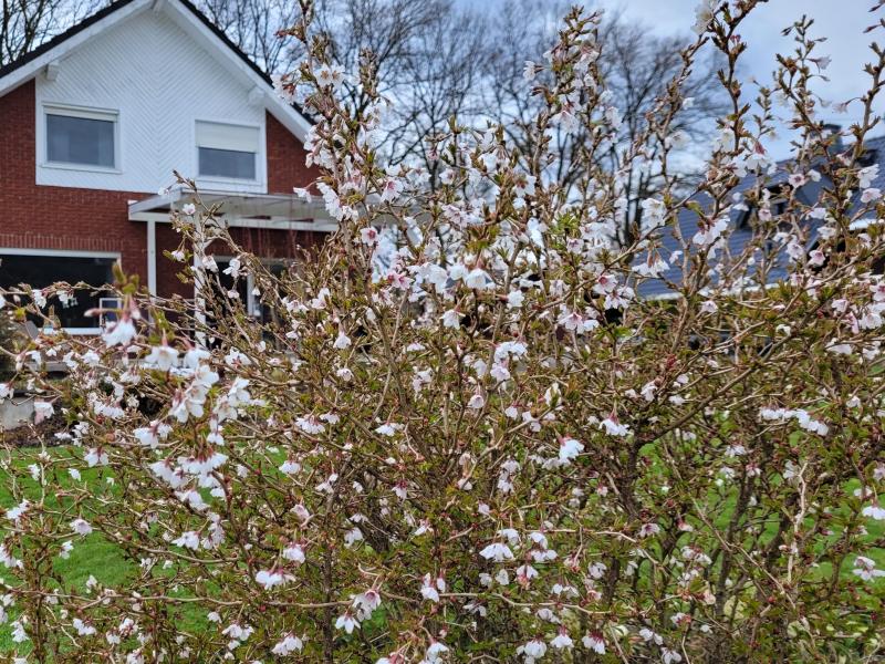 Wunderschön ! Das Wuselige ist als Hecke bestimmt willkommen, jedenfalls dichter als bei einer Subhirtella.