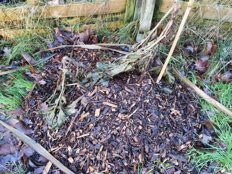 Ich nutze inzwischen nur Feldahornlaub als Winterschutz, zu einem Hügel um die zu schützende Pflanze aufgeschüttet und mit Fichtenzweigen gegen Verwehen abgedeckt.