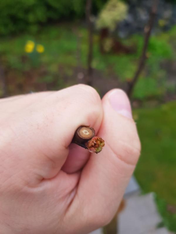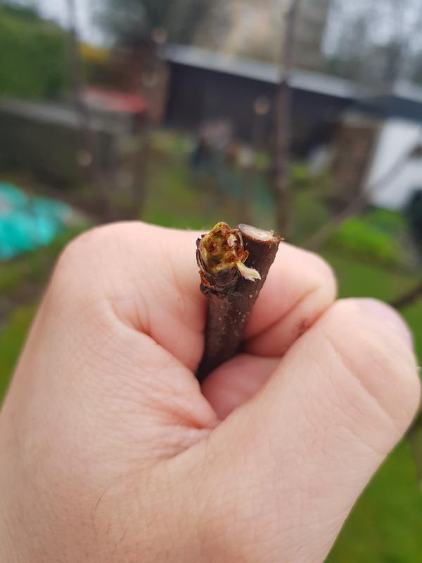 Ich weiss nicht ob noch aus solch zerstörten Knospen ein vernünftiger Ast entspringt. Meine Wunschaugen sind alle betroffen. Unnötige Augen habe ich natürlich ausgebrochen, wie es im Lehrbuch steht.