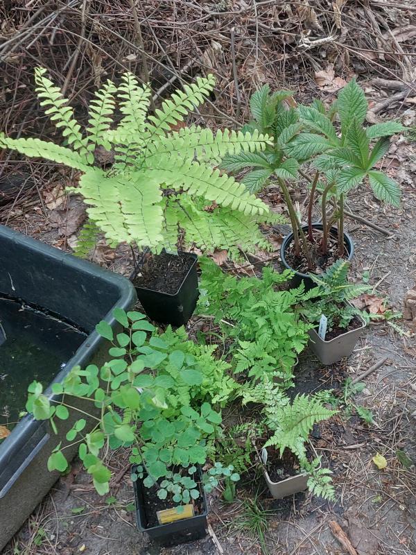 bereitgestellt, und so wurden es auch nur ein paar Farne, ein Schaublatt ( Rotlaub ) und eine Wiesenraute ( mit Purbonus erstanden, weil am Verkaufsstand eines freundlichen Forummitglieds gefunden , herzlichen Dank noch mal dafür !)