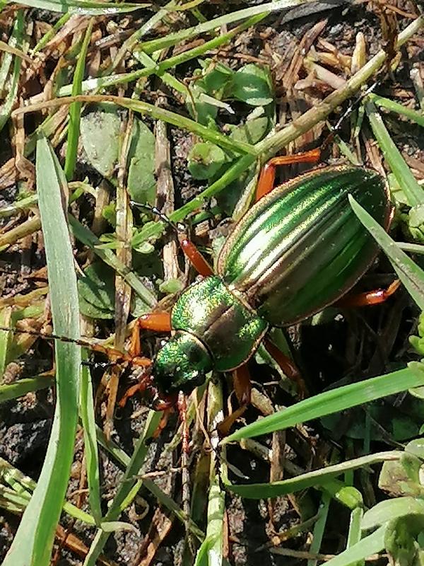 Ich kann diesen Laufkäfer zeigen. In grün-gold kommen sie sehr häufig in unserem Garten vor. Die schwarz - violetten sehe ich deutlich seltener. Lederlaufkäfer sind auch nicht so sehr oft zu sehen.
