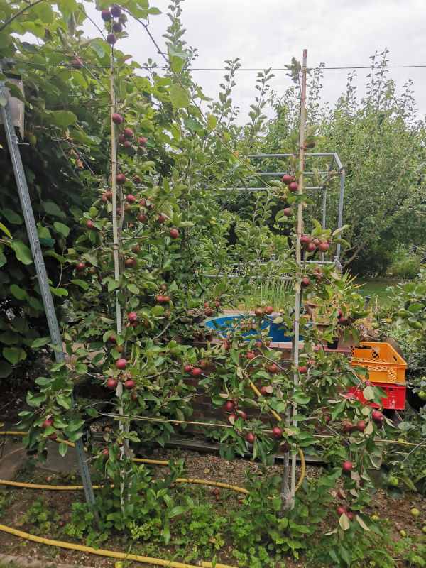 Das kopflastige liegt am Schnitt. Jetzt im Sommer ist die beste Zeit, das Überbauen zurückzunehmen. Bei schwachwüchsigen Bäumen sind immer die unteren Äste zu fördern und die oberen eher ruhig zu halten.Hyla hat geschrieben: ↑12. Jul 2023, 11:37Boskoop fällt raus. Der wird auf schwacher Unterlage zu groß und kopflastig.