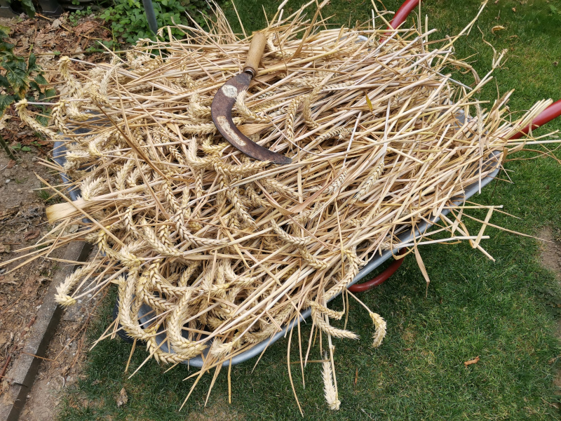 Deshalb gestern etwas ehemaliges Ausfallgetreide vom Strohmulch geerntet, in einem Garten konnte es bis zum Schluss wachsen, zwar ohne Wasser und Dünger, aber die Beete sind hier ja alle altgedüngt mit hohem Vorrat.