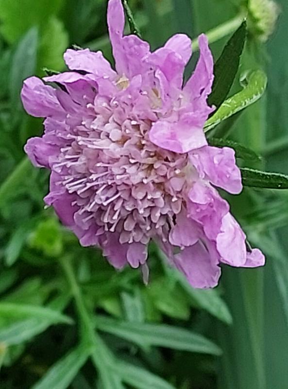 Scabiosa caucasica Fama Deep Blue. Erstblüte.
