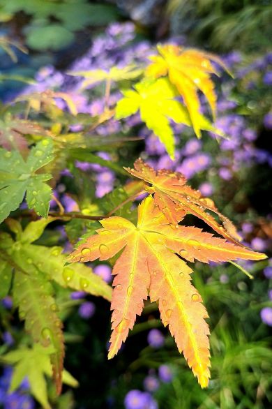 ..und unseren Ahorn "Orange Dream" vor den herbstlichen Astern am Teich.....
