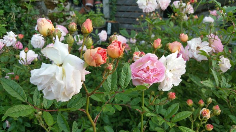 Von Kletterrosen an Rosenbögen bin ich abgekommen.