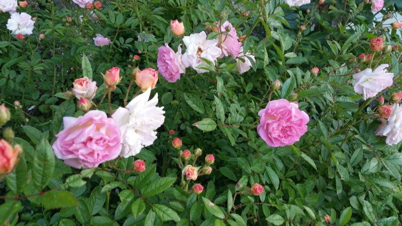 Eine der wenigen durchgehenden Kletterer ist Bournonville, bei mir aber aus Platzgründen mehrmals in der Saison als Strauchrose geschnitten. Somit kann ich nicht sagen, wie hoch sie wachsen würde, jedenfalls verträgt sie den Schnitt.