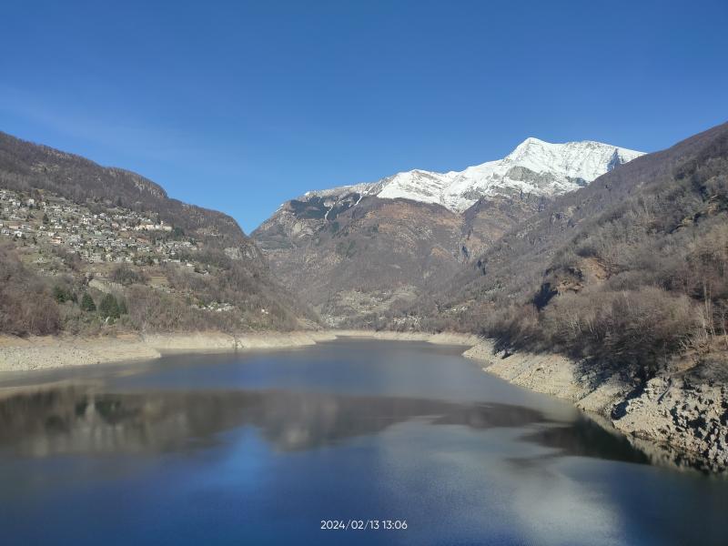 Los geht's am berühmten Verzasca-Staudamm (der mit dem Goldeneye-Bungeesprung). hier aber nur mit einem Foto zur Bergseite.