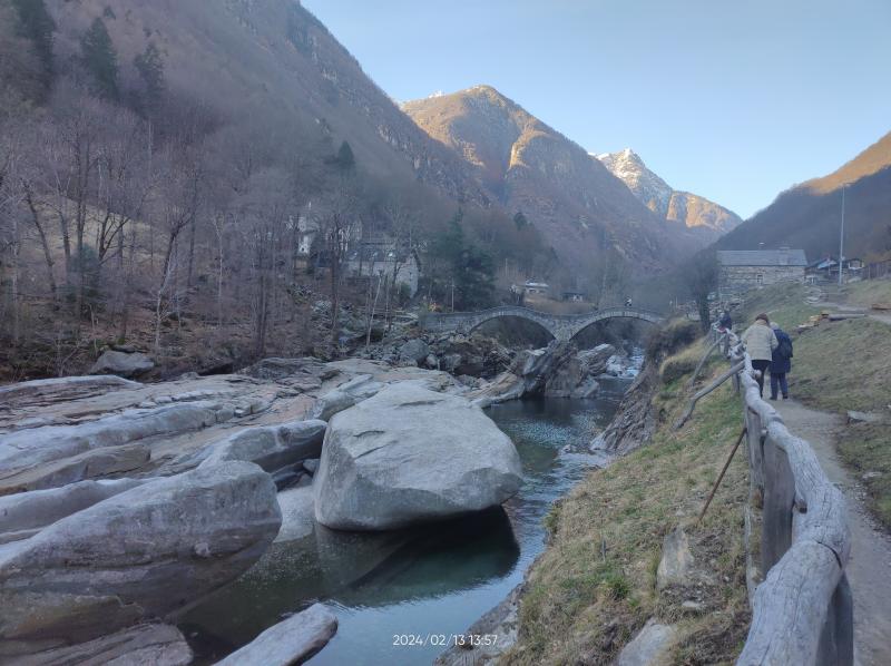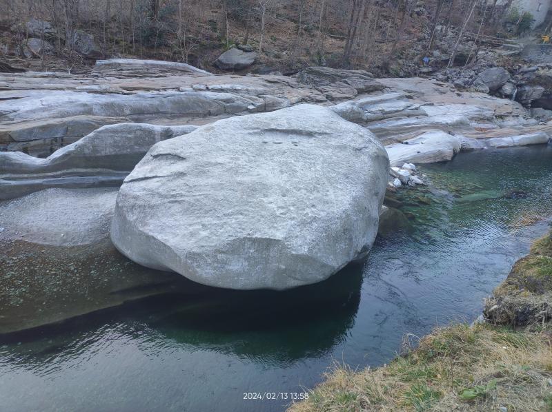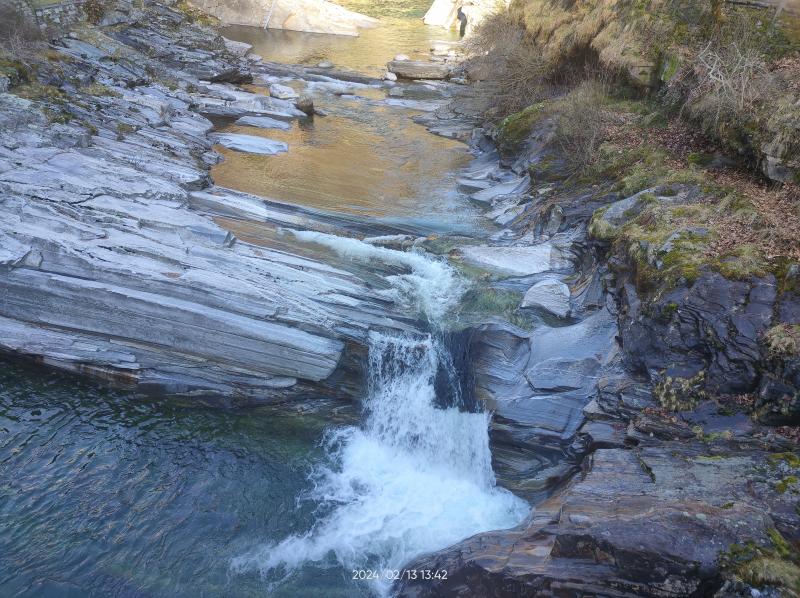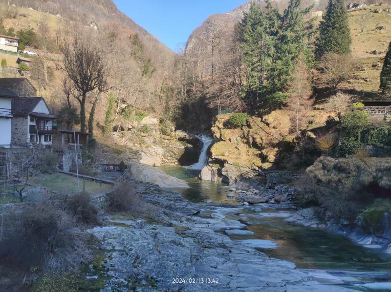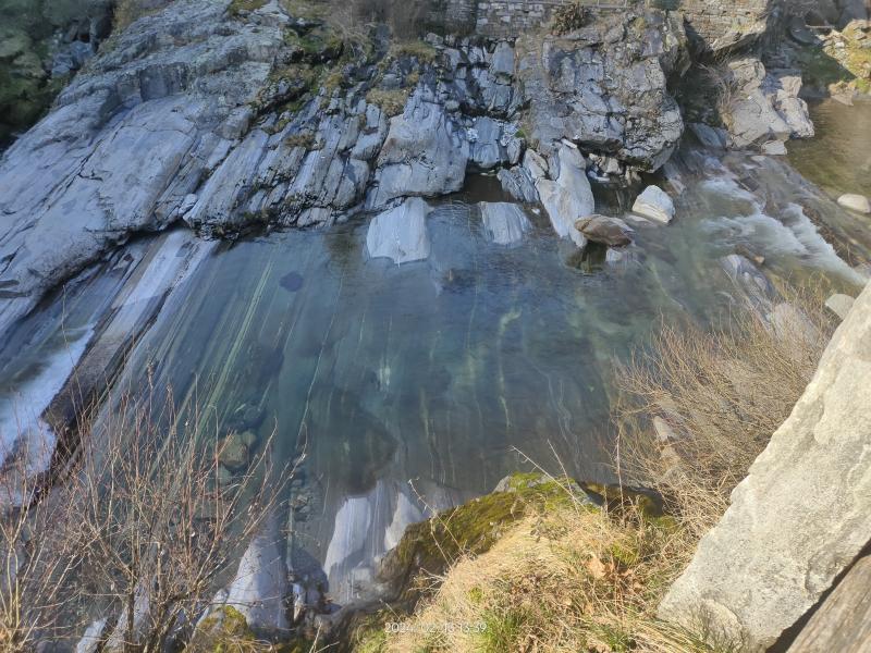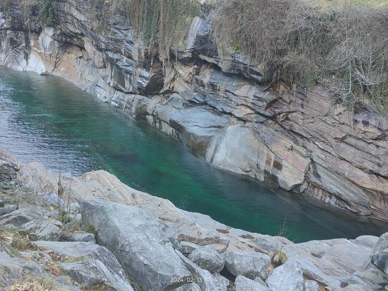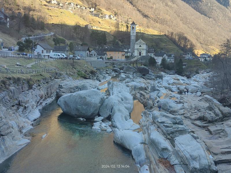 Weiter ging's nach Lavertezzo. Wer da schonmal war, weiß wie voll es dort vor allem im Sommer werden kann. Jetzt im Februar war der Ort nahezu menschenleer. Der Fluss hat dort faszinierende Formen aus dem Gestein 'gefräst'.