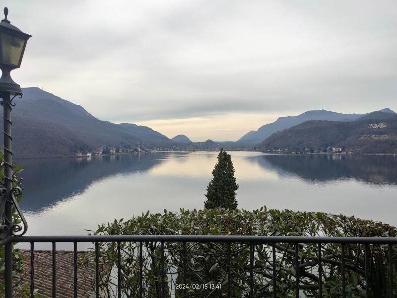 Gestern waren wir in Morcote am Luganer See. Von den Häusern am Ufer sind wir hinaufgegangen zur Kirche Santa Maria del Sasso. Auf halber Höhe bot sich uns dieser Blick auf Porto Ceresio (gehört zu Italien) auf der anderen Seeseite