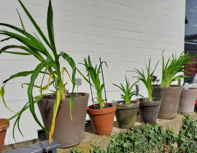 Ich habe 16 Neuzugänge vom letzten Jahr, die sind hier auch getopft und solche, die sich auf ihren Beetplätzen nicht wohl fühlten, insgesamt geschätzte 30 Hems in Töpfen.