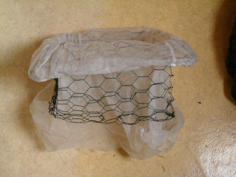 ich fand es einfach zu schade zum Wegwerfen: Hat jemand Interesse an diesem selbstgemachten Schneckenschutz 23cm x 23cm und 15 cm hoch, eine Art Zaun aus Maschendraht mit Windhager Gartenvlies als Bezug. Die Räder sind oben ca. im 45-Grad-Winkel heruntergebogen und dann noch einmal nach innen eingeklappt.