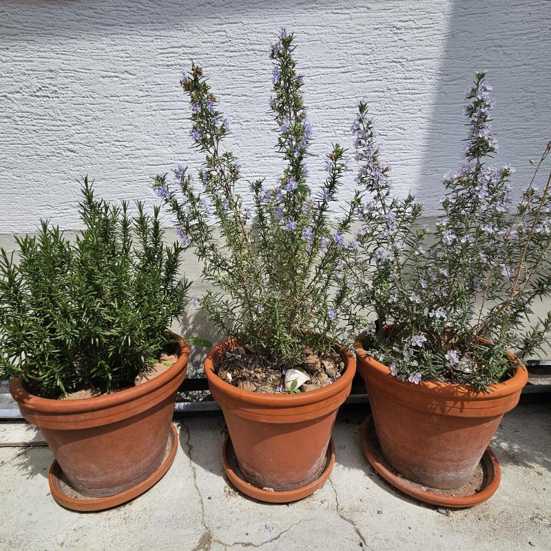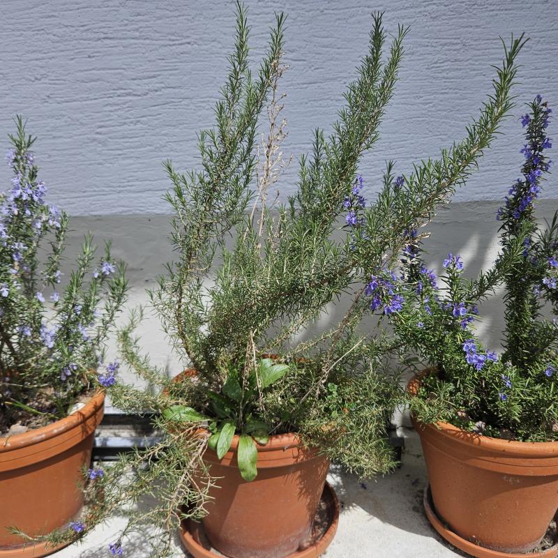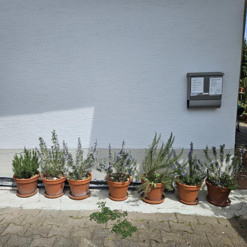 Ich halte sie hier im Odenwald in Terrakottatöpfen. Vor der hellen von Süden sonnenbestrahlten Hauswand. Oben drüber ist ein Balkon und die Rosmarine sind vor Nässe geschützt. Ich habe mit verschiedenen Sorten experimentiert. Aktuell blühen sie noch, mit zwei Ausnahmen.