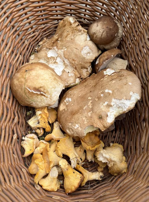 Jetzt kann ich auch was beisteuern. Perlpilze, Hexenröhrlinge und Eierschwammerl sind da.