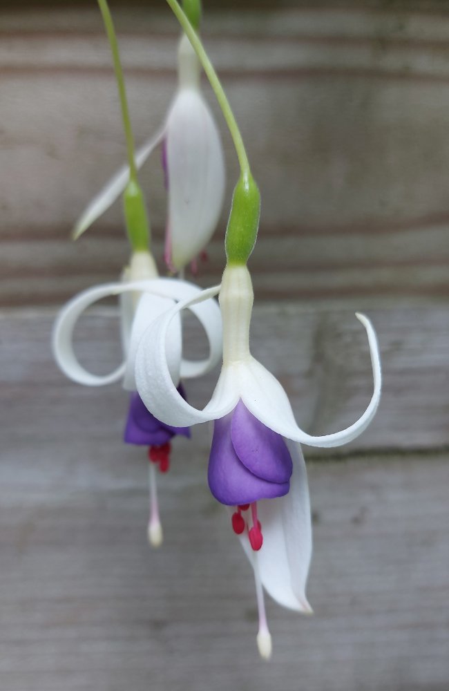 Ich meine, wir haben ein merkwürdiges Fuchsienjahr, denn ich kann mich nicht erinnern, dass ich je solche Riesenblüten hatte. Dabei waren einige arg angeschlagen, dass ich sie zu früh aus dem Winterquartier geholt hatte.