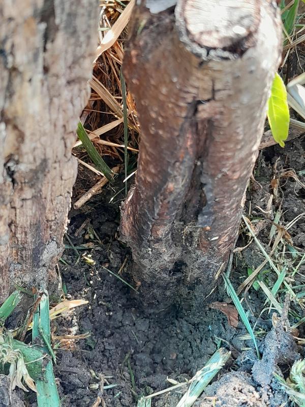 Wichtig ist aber die andere Seite, wo die Edelsorte draufsitzt. Da müssen die Leitungsbahnen ok sein. Ist da die Rinde verfärbt?