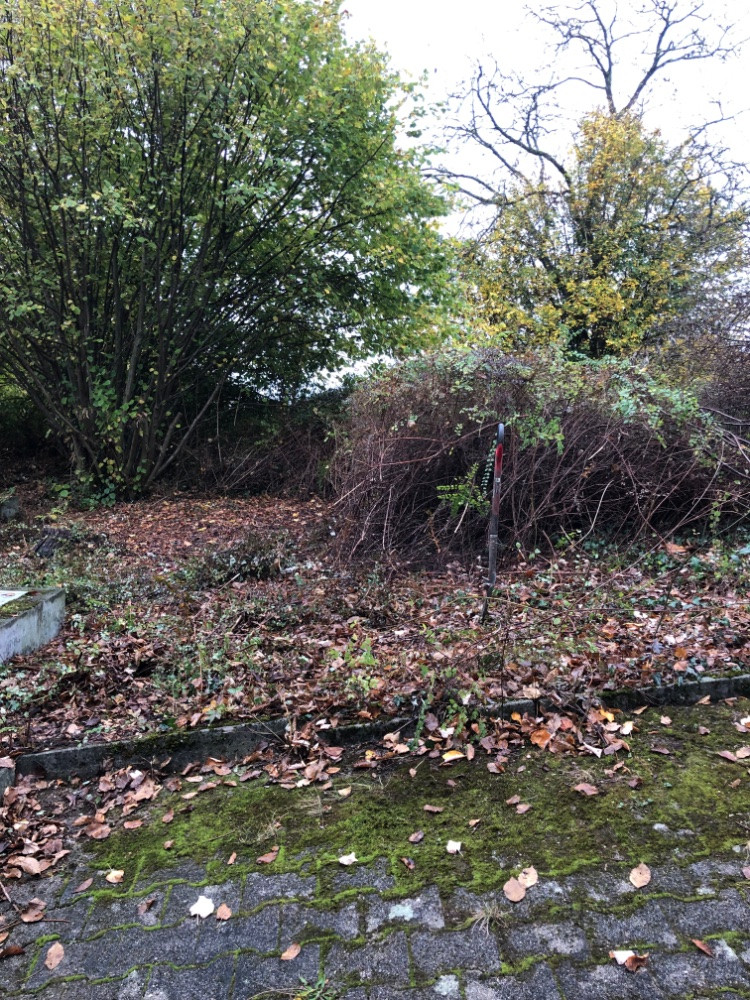 Letzte Woche wurden die Gehölze runter geschnitten. Erst 6 Meter den Weg entlang. Ich habe heute angefangen die Wurzel zu roden.
